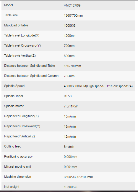Heavy Duty Cutting CNC Milling Machine VMC-1270G