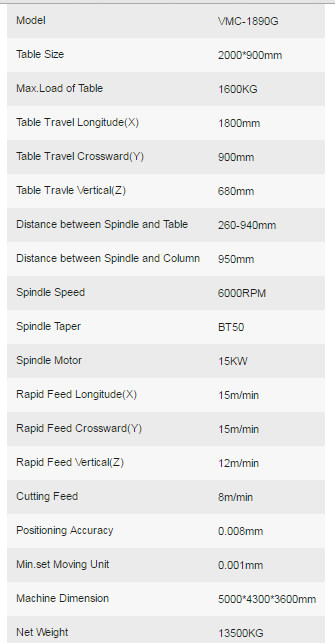 1.Three axes Hardway 2.Royal Spindle 3.FANUC/MITSUBISHI/SIMENS/GSK Controller 4.Taiwan Ballscrew 5.Four guide ways on Y axis 6.Taiwan Gearbox 7.For heavy duty cutting