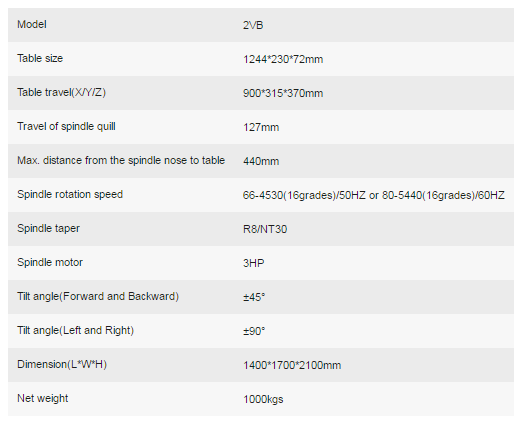 1.Taiwan milling head 2.Bed type structure 3.X,Y axis ballscrew 4.Longer Table, fast feed speed
